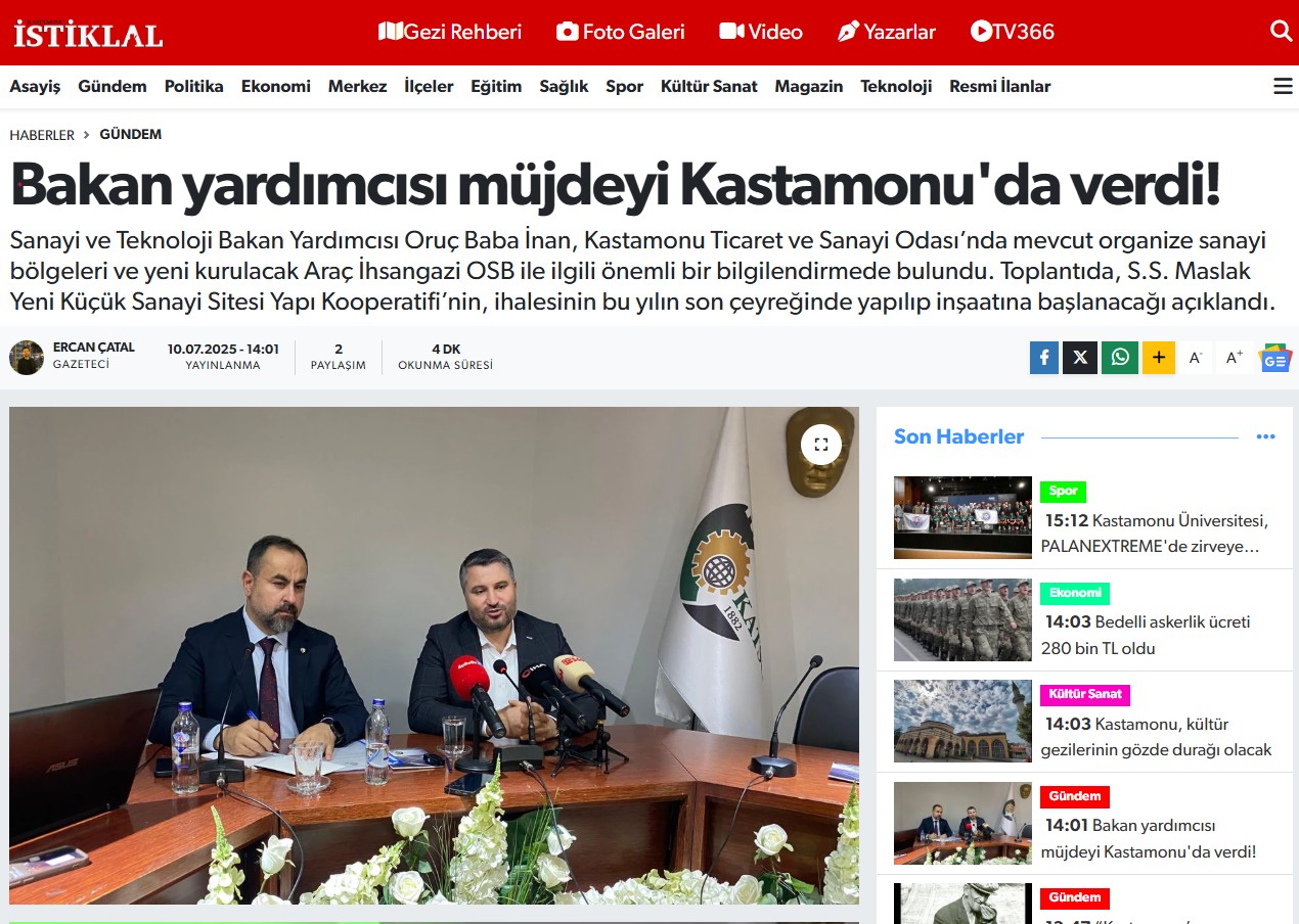 Sanayi ve Teknoloji Bakan Yardımcısı Oruç Baba İnan müjdeyi Kastamonu'da verdi